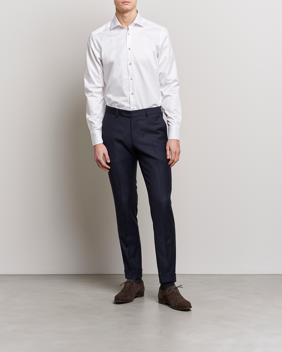 Fitted Body Contrast Cotton Shirt White