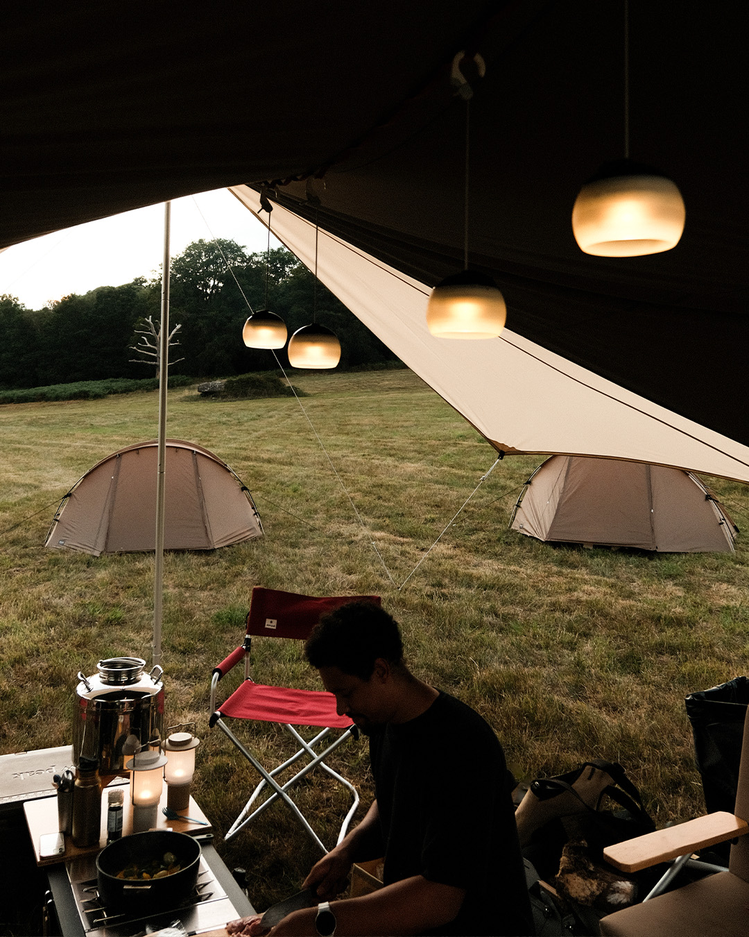 Hanging a line from the ceiling of your tent gives you more options than you might expect. A lantern placed in the middle means you don’t have to fumble with torches in the dark and leaves your hands free for reading, searching or cooking. A simple detail that makes evenings far more practical – and much cosier.