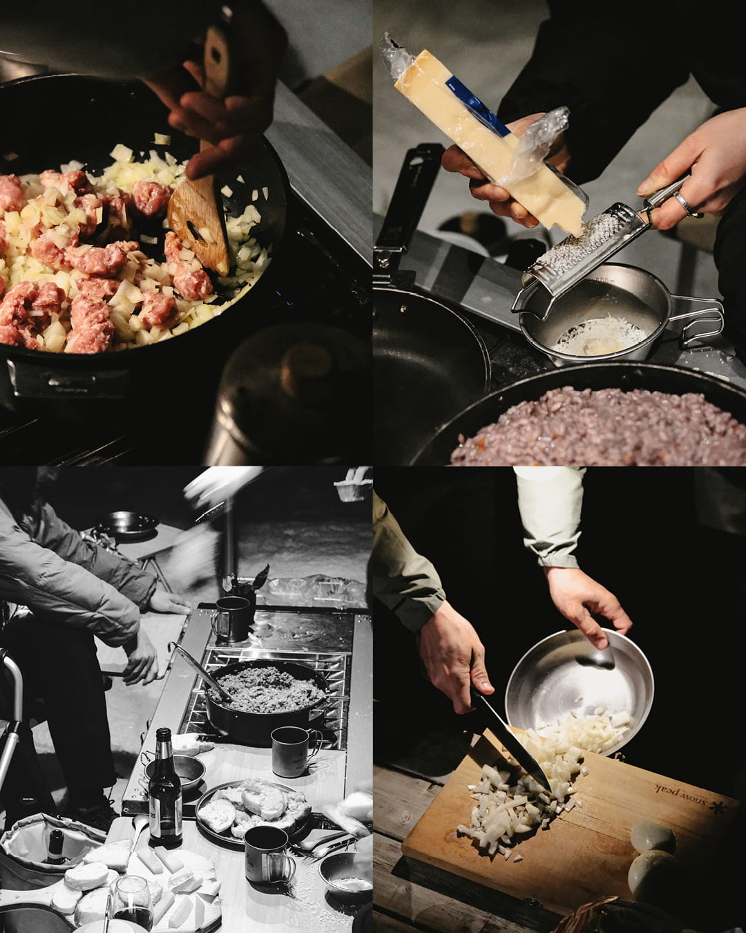 They usually say that happiness is in the stomach and with warm food in the body everything feels a little easier. It doesn't have to be too complicated when making a good dinner if you simply plan properly beforehand. Bring ingredients that are not so temperature change sensitive and require minimal equipment. In our case, we decide on a red wine risotto topped with salsiccia (of course it's just as easy to make it vegetarian - just skip the salsicca and add a little extra seasoning). Success in every way and thanks to the cold we can heat up the leftovers for lunch the next day. To cook the risotto, you need a gas burner (or a really hot fire), two slightly larger containers/vessels, a cutting board, a knife, a zest grater and a ladle to stir/scoop with. You can find the recipe further down.