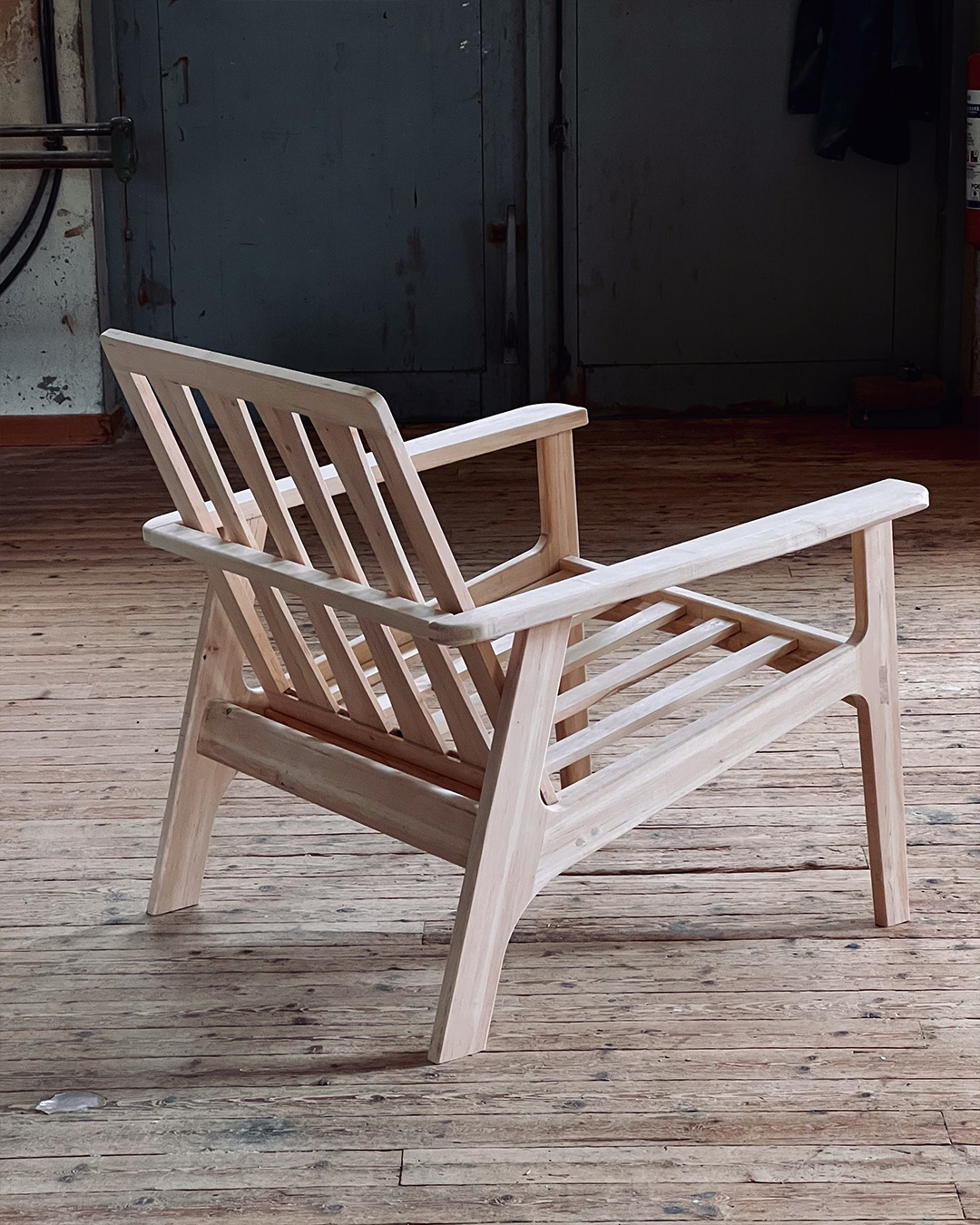 Details of the desk and a prototype of a lounge chair in a simpler type of wood, still in progress. The charm of a prototype is in witnessing the development toward the finished result.