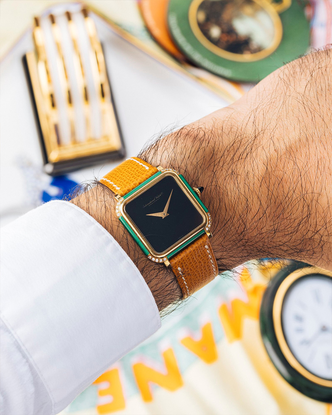 „Für mich dreht sich alles um Präsentation und Storytelling“, erklärt er. „Deshalb arrangiere ich die Bilder so, dass die Accessoires sowohl zur Uhr als auch zur Epoche passen, aus der sie stammt. Das erweckt die Stücke zum Leben.“