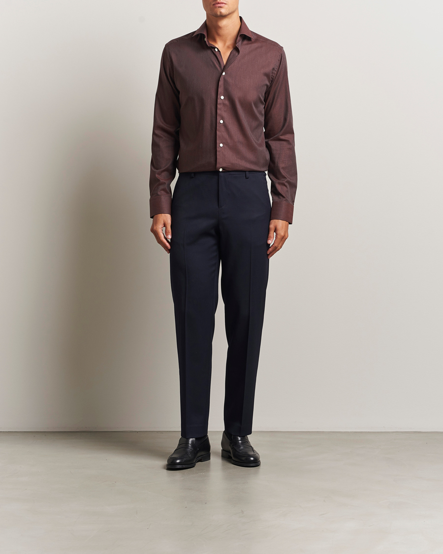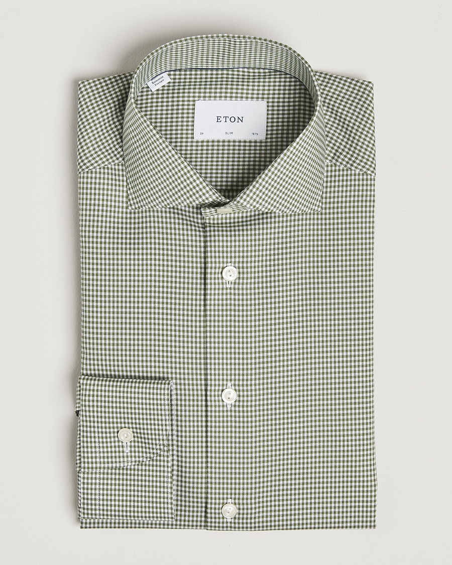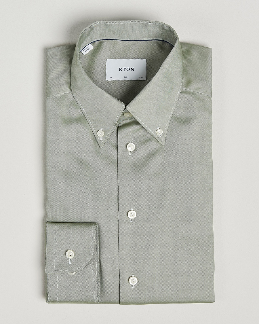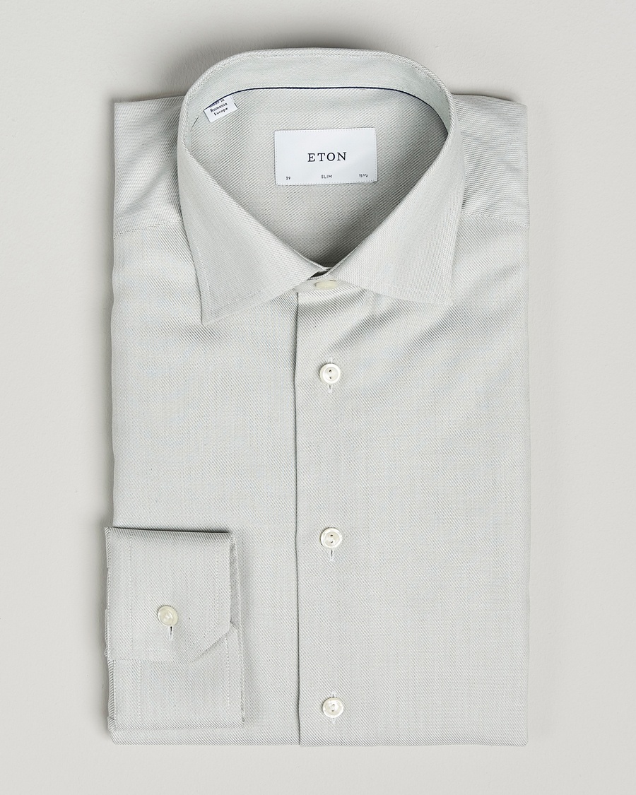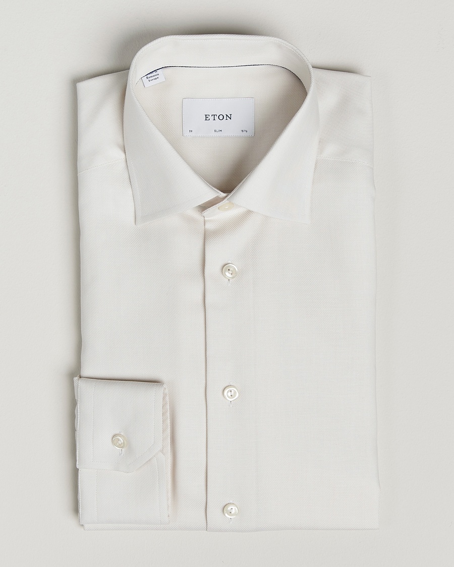 Beim Besuch eines Textillieferanten fiel das Augenmerk auf ein besonderes Material. Der grobe Stoff stellte sich jedoch als schwer in der Verarbeitung heraus, aber Eton hielt an der Idee fest. Mit Fachleuten gelang die Entwicklung einer geheimen Formel, die den gesamten Prozess der Verarbeitung des Stoffes und die Endfertigung umfasst. Die bügelfreie Baumwolle wurde zum vollen Erfolg.