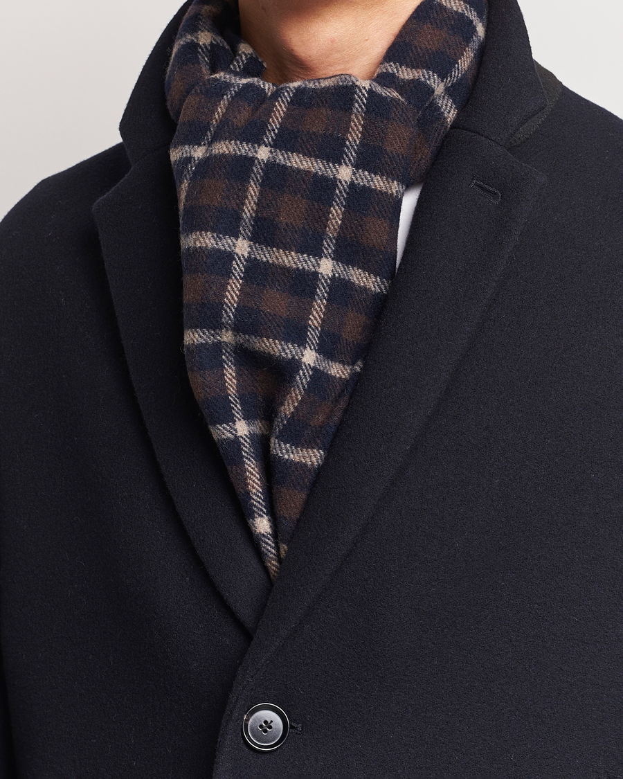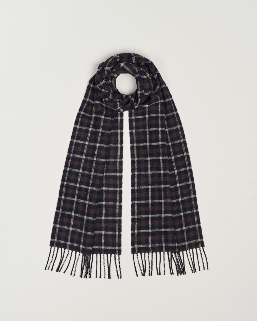Checked Wool Scarf Dark Brown