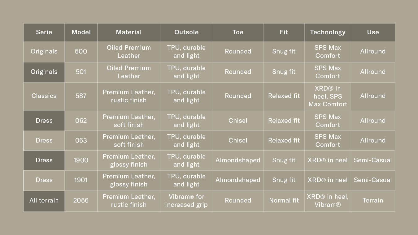 Diese Serie ist für dich, wenn du eine ausgewogene Kombination aus Tradition und Innovation suchst – einen Stiefel, der nicht nur auf Langlebigkeit ausgelegt ist, sondern auch Komfort und Stil für jede Gelegenheit bietet. Die Classics-Serie ist besonders geeignet für alle, die lange Tage auf den Beinen verbringen.