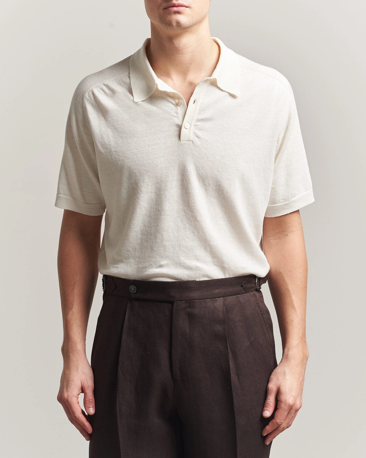 Short Sleeve Knitted Polo Off White