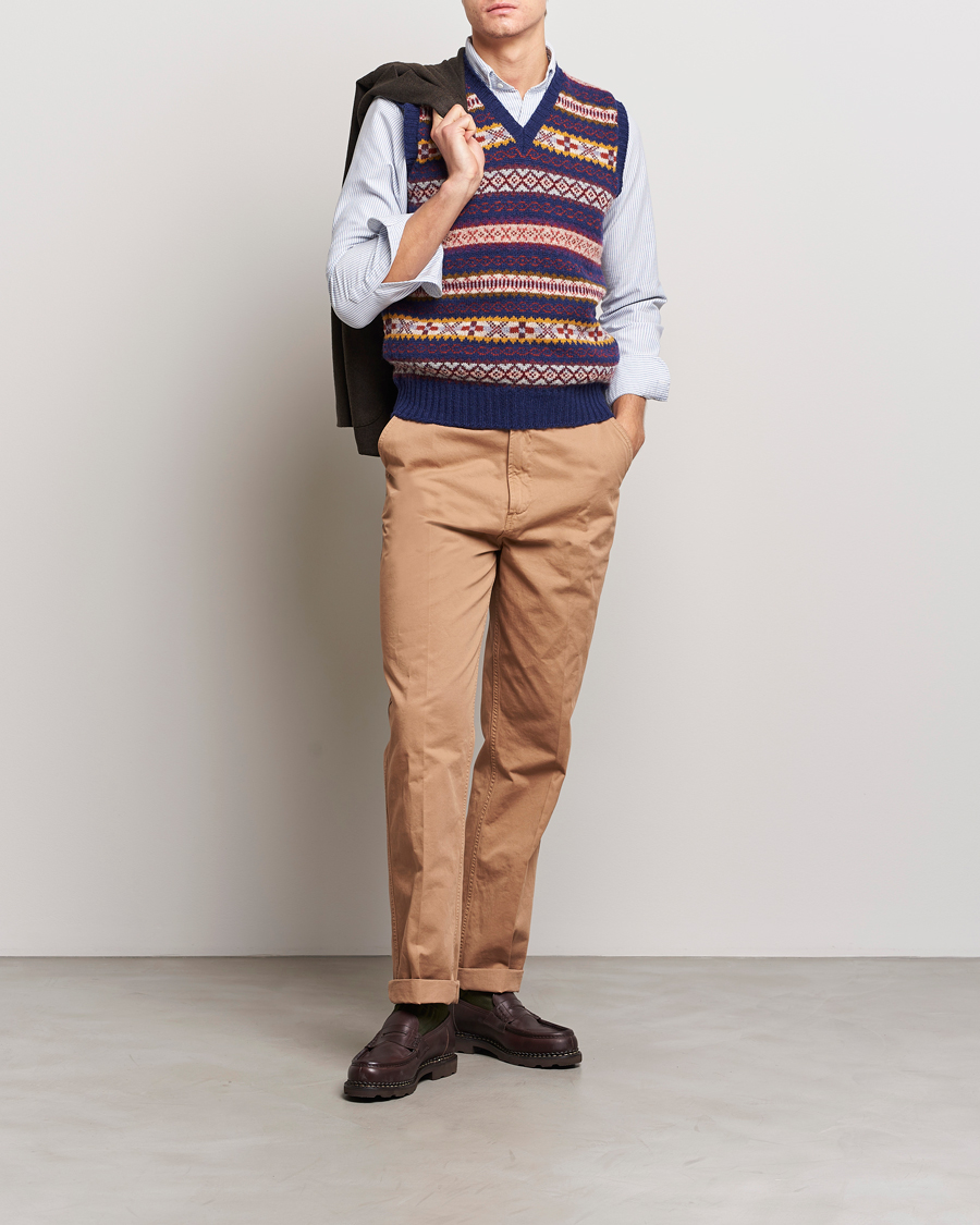 At Care of Carl, we seldom talk about trends; instead, we cherish timelessness and classic garments that can be passed down through generations – from grandfather to father and son, and onwards to grandson. Even though the grandpa-core phenomenon may be considered a trend today, the aesthetics that reflect the grandpa style have been around for decades and are still relevant today. The garments that characterise the style include cardigans, vests, vintage loafers, knitted sweaters, tweed blazers, sturdy sneakers, denim, loose suit trousers, and retro streetwear.