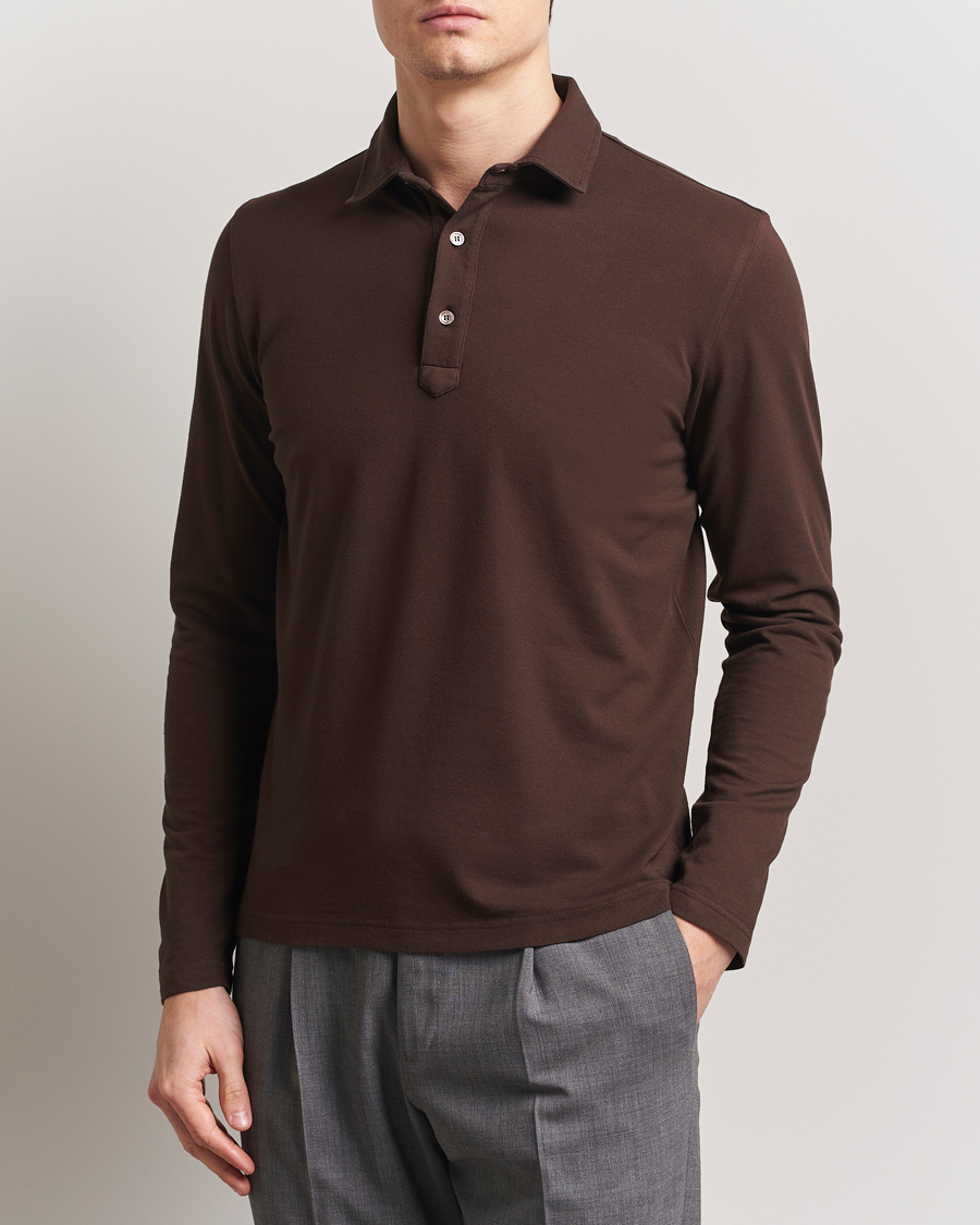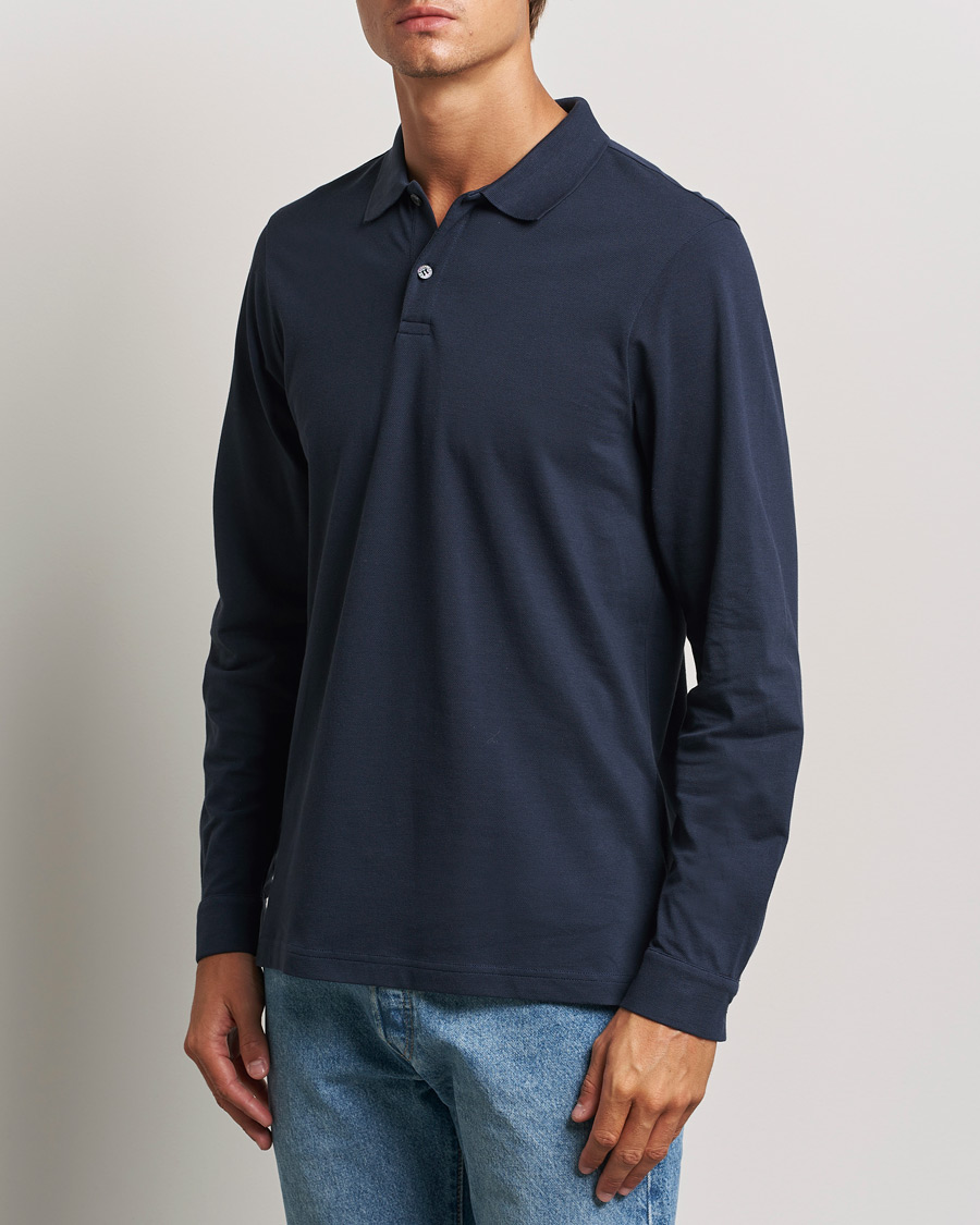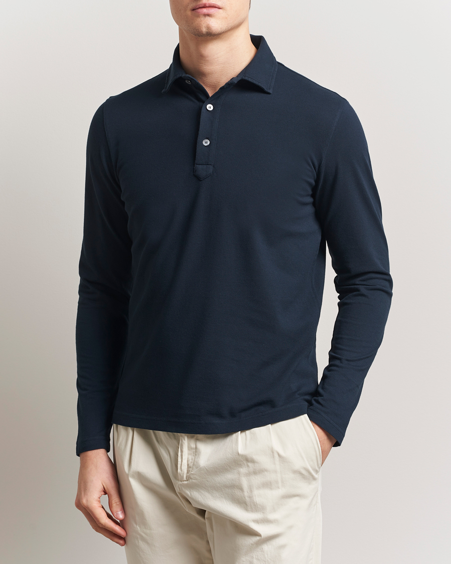 Supima Cotton Long Sleeve Pique Polo Navy