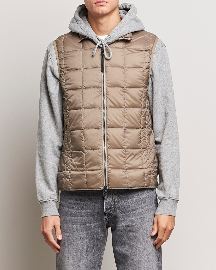 High Neck Full Zip Lightweight Down Vest Khaki